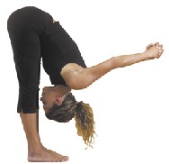 Side Bend: Begin with a neutral spine — one that’s not hyperextended or tucked under. Lift your ribs up and away from your pelvis, then drop your shoulder. Slide your hand as far as is comfortable down the outside of your leg. Note: Keep the opposite arm down at your side for support.