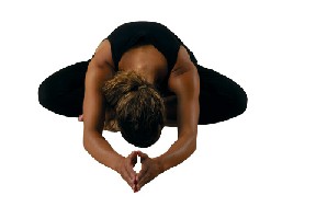Child's Pose: Situate yourself on the floor with your knees together or apart and press your hips into your heels. Fold your torso over your legs. Drop your shoulders to the side. Your arms should be at your side with the palms of your hands facing up. Your forehead should rest on the ground. Note: You may wish to use a pillow under your forehead or to spread your knees wider. You can also use a pillow under your hips and/or feet.