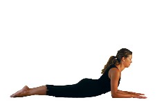 Sphinx: Lying on your stomach, place your elbows under your shoulders with your hands flat on the floor. Squeeze your shoulder blades back, together and down. Press your hips, legs and toes into the floor. Extend through your tailbone toward your heels. Use your toes and elbows to stretch your ribs away from your hips. Lift your heart forward. Extend from your belly button to your shins. Note: If you feel any tension in your lower back, tighten your abdominal muscles and pull them off the floor.