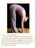With the client standing, feet parallel and about two inches apart, ask her to slowly bend forward with the knees straight, stopping as soon as there is pain or increased discomfort. Take note of how far the client was bending forward when the pain occurred or increased.