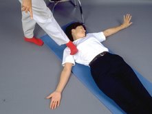 In a lock, the PIC has the legs extended with toes pulling toward the torso, one arm swept to the side with palm out and fingers pointed to the ceiling, and the head rolled down with nose pointed to the shoulder. The arm and head positioning is done on the side of the body opposite the area being worked, but allows the stretch to affect the entire body. If the lock sounds uncomfortable, don’t worry. The stretches are accomplished quickly, in three repetitions of only 10 seconds each, and an entire workout can be completed in as little as 20 to 30 minutes.