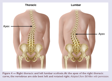 Scoliosis may be classified in a myriad of ways: by its reversibility, severity, etiology, or type and location. A primary consideration for manual therapists is the type of scoliosis … Is it structural or functional? Spinal curves that improve during forward bending, side bending, and specific rotational movements are generally referred to as functional or secondary scoliotic curves. If the curve does not straighten during any of these maneuvers, it is considered a structural, fixed, or primary scoliosis. Many functional curves remain in the body too long and may become fixed as the brain valiantly attempts to compensate for asymmetry by altering length-tension balance in associated soft tissues, i.e., muscle guarding. Prolonged postural compensations eventually decompensate in adjacent structures. Then the client begins experiencing increased symptoms, signs, and disease.