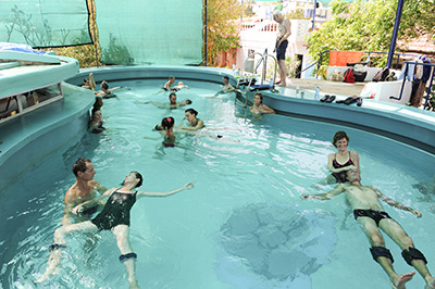 In Zen shiatsu, Masunaga teaches that stretches are an older way to access and balance the flow of energy through our bodies than shiatsu’s traditional work with acupuncture points. Stretching increases flexibility, and warm water—which many associate with the body’s deepest states of waking relaxation—is the ideal medium for it. The support of water takes weight off the vertebrae and allows the spine to be moved in ways impossible on land. Gentle, gradual twists and pulls relieve the pressure a rigid spine places on nerves and helps undo any dysfunction this pressure can cause to the organs served by those nerves.